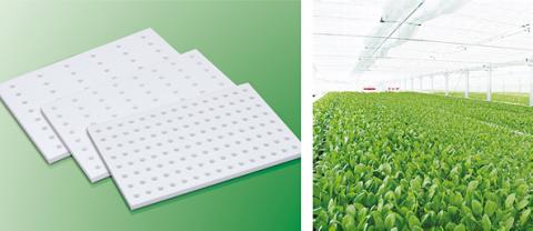 水耕栽培用の定植パネルには、発泡スチロール製(PS)と発泡ポリプロピレン製(PP)の2種類がありますが、洗浄性・耐久性・耐根性に優れた発泡ポリプロピレン製(PP)の定植パネルがお薦めです。
