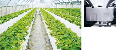 高設栽培の特長は、立ったまま楽な姿勢で手入れや収穫作業が行え、土耕栽培よりも足腰への負担が少なく、作業効率も上がります。