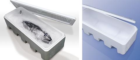 マグロ保冷輸送箱は、発泡スチロールの優れた断熱性と高気密嵌合仕様で保冷効果を高め、長距離輸送でも大切に育てたクロマグロをフレッシュな状態でお届けできます。